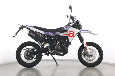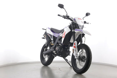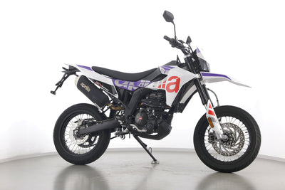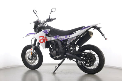 Eine Aprilia SX 125 E5+ in Topzustand u.a. mit Originalausstattung sowie LED-Blinkern und -Rücklicht.