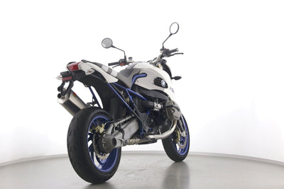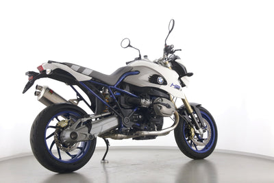 Eine BMW HP2 Megamoto in sehr gepflegtem Zustand u.a. mit Akrapovic-Endschalldämpfer und Öhlins-Federbein.