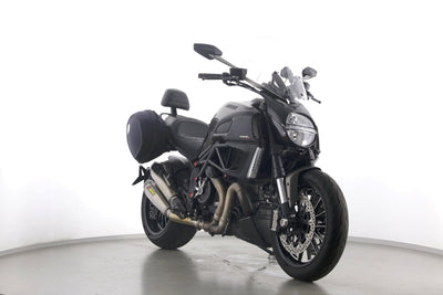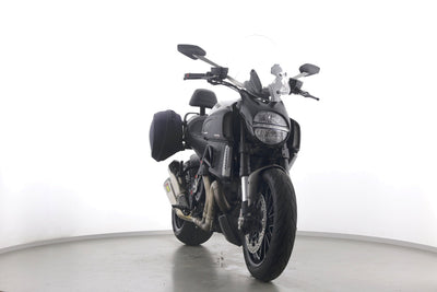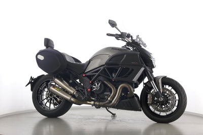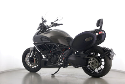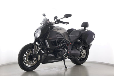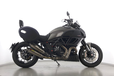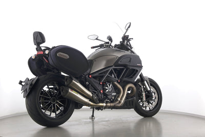 Eine scheckheftgepflegte Ducati Diavel Strada in sehr gepflegtem Zustand u.a. mit Akrapovic-Doppel-Endschalldämpfer sowie Ducati-Softkoffer-System.