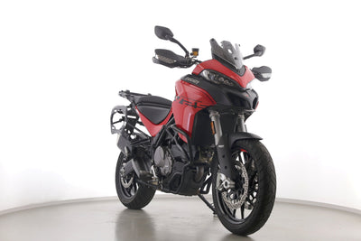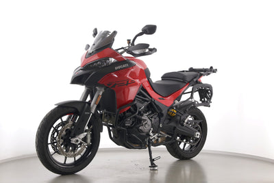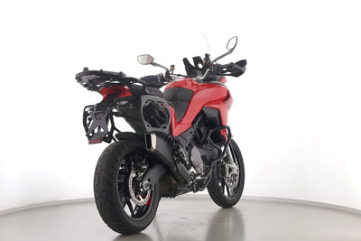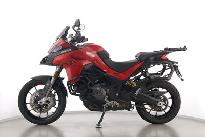 Eine Ducati Multistrada V2 S aus zweiter Hand in gepflegtem Zustand u.a. mit Kofferträger und Gepäckbrücke.