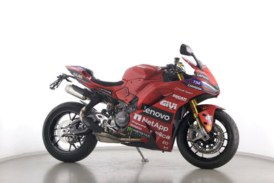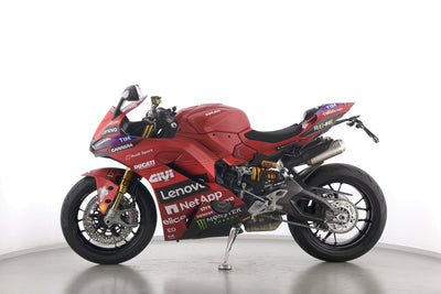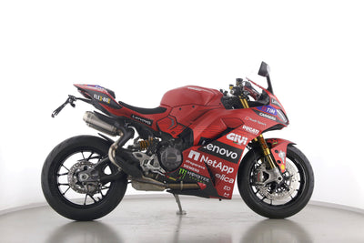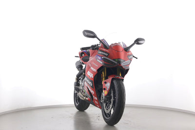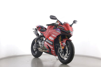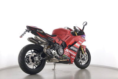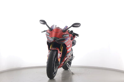 Eine Ducati Panigale V2 S als Neufahrzeug u.a. mit Sonderdekor Moto GP und LighTech-Kennzeichenhalter.