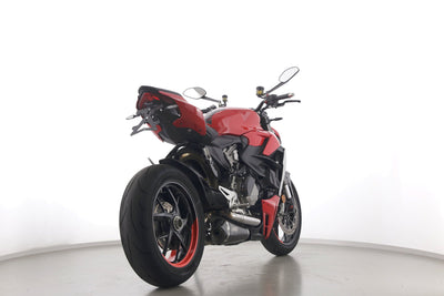 Eine scheckheftgepflegte Ducati Streetfighter V2 aus zweiter Hand in Topzustand u.a. mit MIVV-Endschalldämpfer und Rizoma-Kennzeichenhalter.