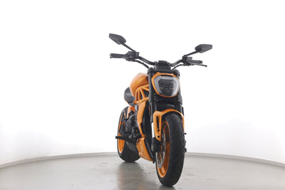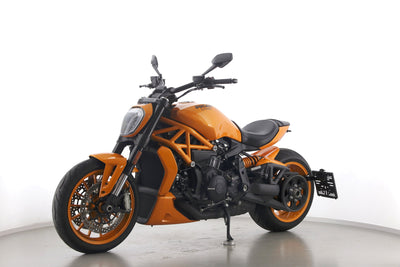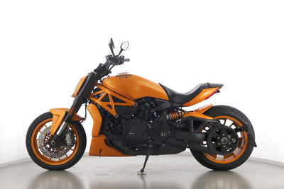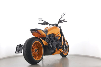 Eine scheckheftgepflegte Ducati XDiavel LLC aus zweiter Hand in Topzustand u.a. mit Sonderlackierung in Lambo-Orange sowie seitlichem Kennzeichenhalter von Rizoma.