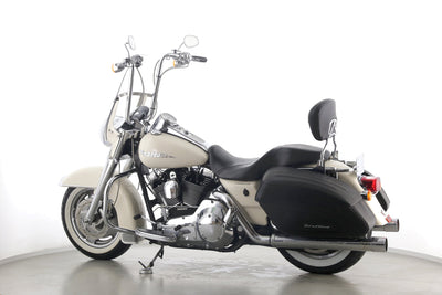 Eine Harley-Davidson Road King Custom FLHRSI in gepflegtem Zustand u.a. mit Penzl-Klappenauspuff manuell sowie Sturzbügeln.