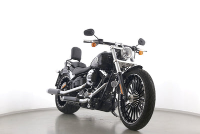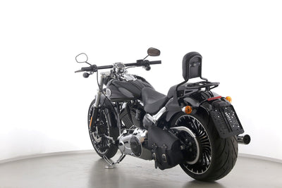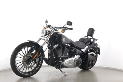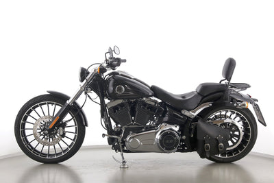 Eine Harley-Davidson Softail Breakout FXSB aus zweiter Hand in Topzustand u.a. mit Drosselung auf 34 kW und Turbinenfelgen.