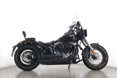 Eine scheckheftgepflegte Harley-Davidson Softail Slim FLS 103 in gepflegtem Zustand u.a. mit Kesstech-Klappenauspuff und Sturzbügel.