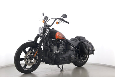 Eine Harley-Davidson Softail Street Bob 114 FXBBS in sehr gepflegtem Zustand u.a. mit Sturzbügel sowie seitlicher Leder-Bobbertasche.
