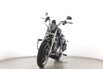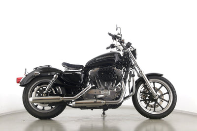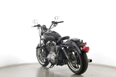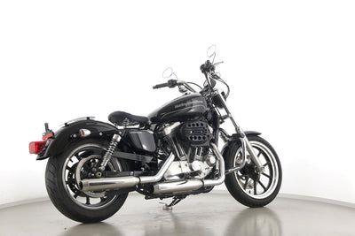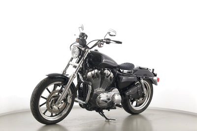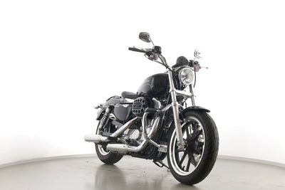 Eine scheckheftgepflegte Harley-Davidson Sportster XL 883 L Superlow aus zweiter Hand in gepflegtem Zustand u.a. mit Miller-Endschalldämpfer sowie Sturzbügel.