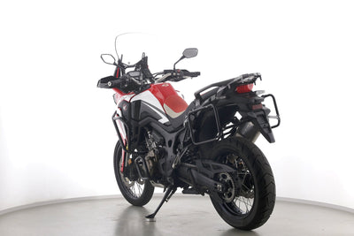 Eine Honda CRF 1000 L Africa Twin DCT aus zweiter Hand in gebrauchtem Zustand u.a. mit Sturzbügel 4teilig sowie Koffernhalter.