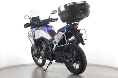 Eine scheckheftgepflegte Honda CRF 1100 L Africa Twin DCT aus zweiter Hand in gepflegtem Zustand u.a. mit Doppelkupplungsautomatik DCT sowie Givi-Topcase groß.