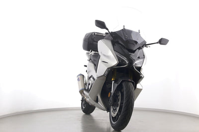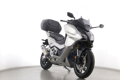 Eine Honda Forza 750 aus zweiter Hand in gepflegtem Zustand u.a. mit Termignoni-Endschalldämpfer und Honda-Topcase.