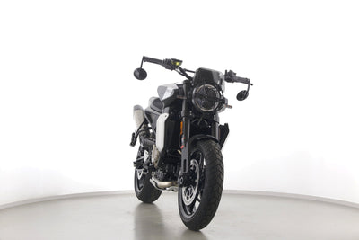 Eine Husqvarna Svartpilen 801 als Neufahrzeug u.a. mit Akrapovic-Endschalldämpfer und Ergo-Sitzbank.