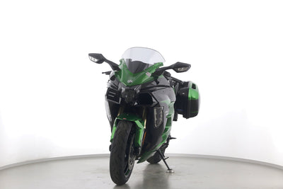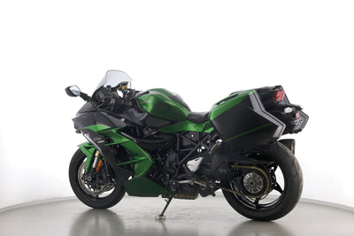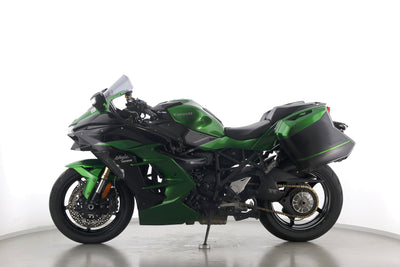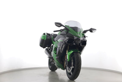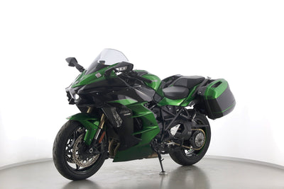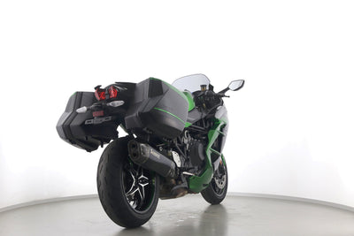 Eine Kawasaki Ninja H2 SX SE in gepflegtem Zustand u.a. mit Akrapovic-Endschalldämpfer sowie Kawasaki-Koffersystem gleichschliessend.