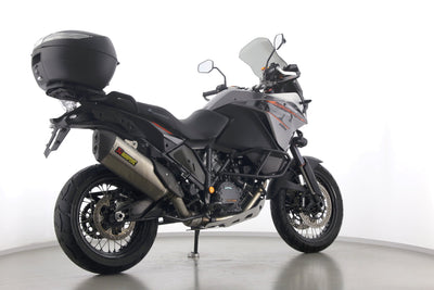 Eine KTM 1190 Adventure in gepflegtem Zustand u.a. mit Akrapovic-Endschalldämpfer sowie Touratech Komfort-Sitzbank.
