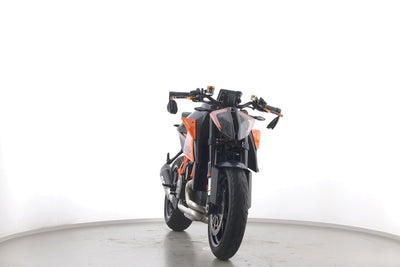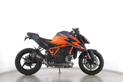 Eine KTM 1290 Super Duke R in sehr gepflegtem Zustand u.a. mit SC-Project-Endschalldämpfer sowie kurzem Kennzeichenhalter.