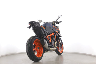 Eine KTM 1290 Super Duke R Evo aus erster Hand in neuwertigem Zustand u.a. mit Akrapovic-Endschalldämpfer und kurzem Kennzeichenhalter.