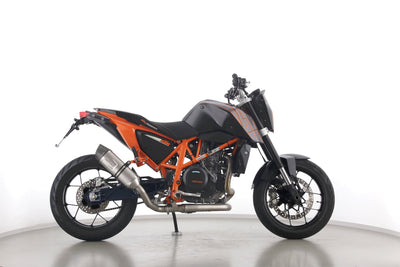 Eine scheckheftgepflegte KTM 690 Duke in gepflegtem Zustand u.a. mit LeoVince-Endschalldämpfer sowie kurzem Kennzeichenhalter.