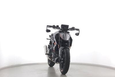 Eine KTM 125 Duke aus erster Hand in gepflegtem Zustand u.a. mit Radical-Racing-Endschalldämpfer sowie Lenkerend-Spiegeln.