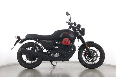 Eine Moto Guzzi V7 III Carbon aus zweiter Hand in gepflegtem Zustand als Sondermodell 1020/1921 u.a. mit gesteppter Komfortsitzbank.