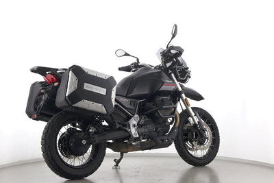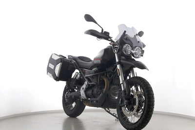 Eine Moto Guzzi V85 TT in gepflegtem Zustand u.a. mit MotoGuzzi-Koffersystem und Sturzbügel.