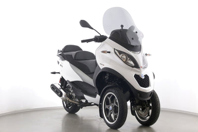 Eine Piaggio MP3 500 LT Sport aus erster Hand in gepflegtem Zustand u.a. mit Topcase-Trägerplatte und ABS.
