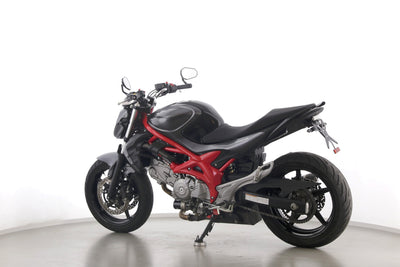 Eine scheckheftgepflegte Suzuki SFV 650 Gladius aus zweiter Hand in gepflegtem Zustand u.a. mit Tieferlegung und Shark-Carbon-Endschalldämpfer.