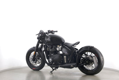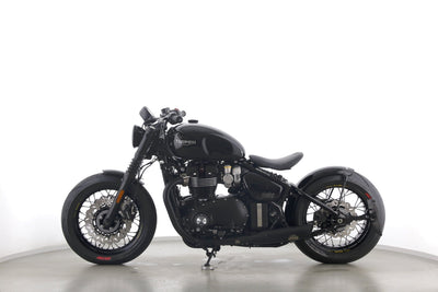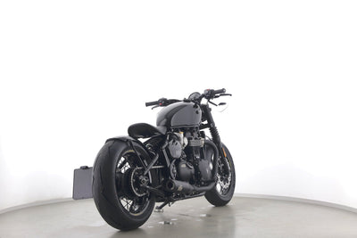 Eine Triumph Bonneville Bobber in Topzustand u.a. mit Jekill&Hyde-Klappenauspuff und Heckumbau Race-Bobber.