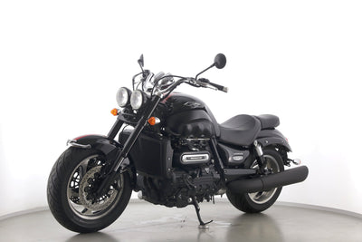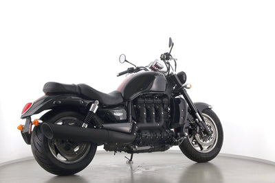 Eine Triumph Rocket III Roadster in gepflegtem Zustand u.a. mit Lottermann-Fussrastenanlage sowie Komfort-Sitzen.