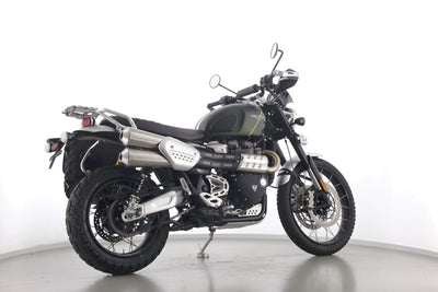 Eine scheckheftgepflegte Triumph Scrambler 1200 XC aus erster Hand in gepflegtem Zustand u.a. mit LED Zusatzscheinwerfern sowie Öhlins-Federbeinen.