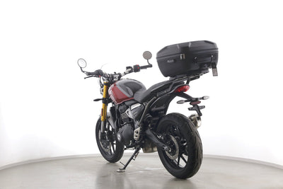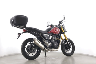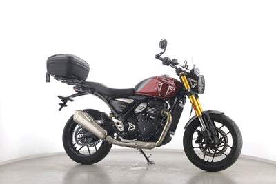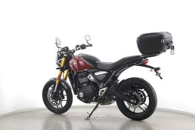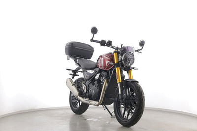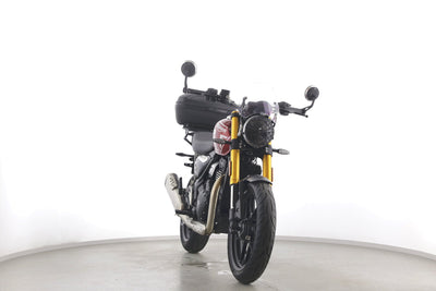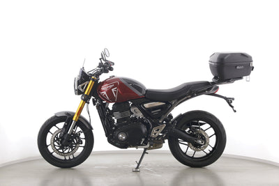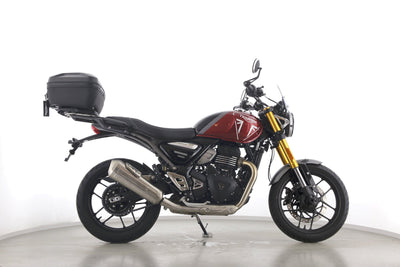 Eine Triumph Speed 400 aus erster Hand als Neufahrzeug u.a. mit Windschild und Topcase.
