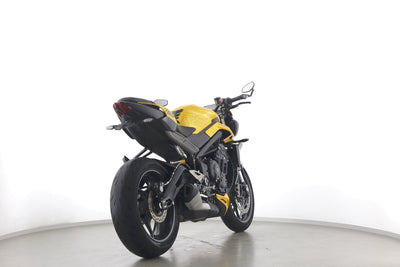 Eine Triumph Street Triple 765 RS aus zweiter Hand in sehr gepflegtem Zustand u.a. mit Öhlins-Federbein sowie kurzem Kennzeichenhalter.