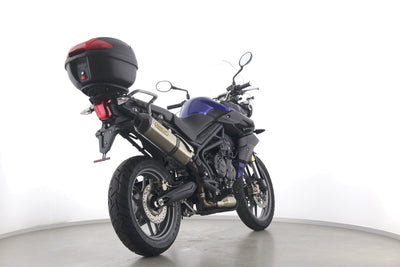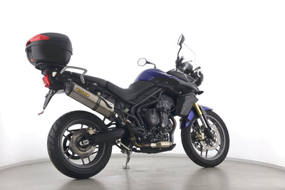 Eine scheckheftgepflegte Triumph Tiger 800 aus zweiter Hand in gepflegtem Zustand u.a. mit Arrow-Endschalldämpfer sowie Givi-Topcase.