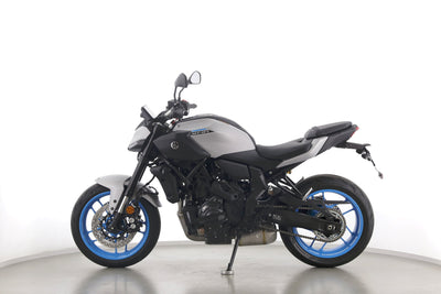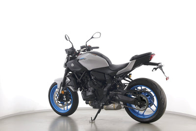 Eine Yamaha MT-07 Y-AMT 35 kW als Neufahrzeug u.a. mit Akrapovic-Komplettauspuffanlage und einstellbarer Fußrastenanlage.