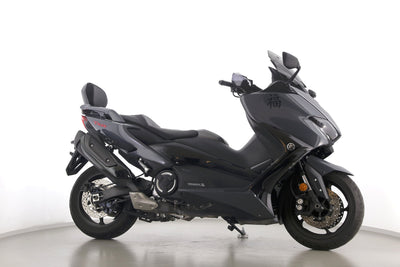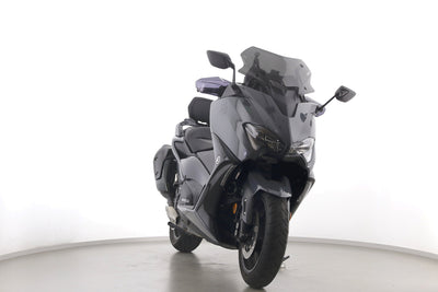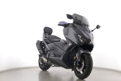 Eine scheckheftgepflegte Yamaha TMAX 560 Tech Max aus zweiter Hand in gepflegtem Zustand u.a. mit Yamaha-Sportscheibe und Yamaha-Rückenlehne.