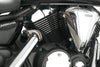Eine Yamaha XVS 950 A Midnight Star in gepflegtem Zustand mit Sturzbügel und Tankpad.