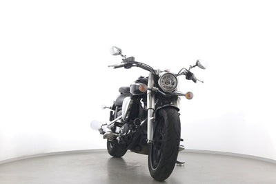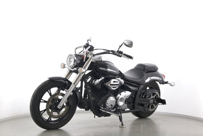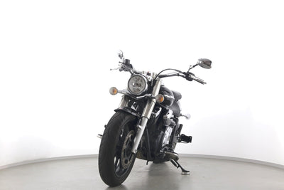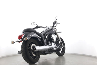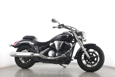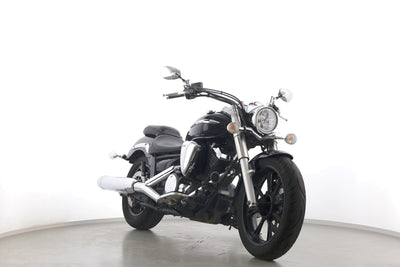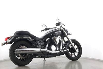Eine Yamaha XVS 950 A Midnight Star in gebrauchtem Zustand mit seitlichem Kennzeichenhalter.